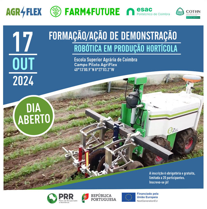 Realizou-se em julho de 2024 uma visita ao campo piloto do projeto AgriFlex por parte de uma iniciativa intitulada de Summer School do projeto Farm4Future, que pretendeu dar a conhecer o trabalho de investigação e desenvolvimento da área agrícola e alimentar realizado na ESAC.