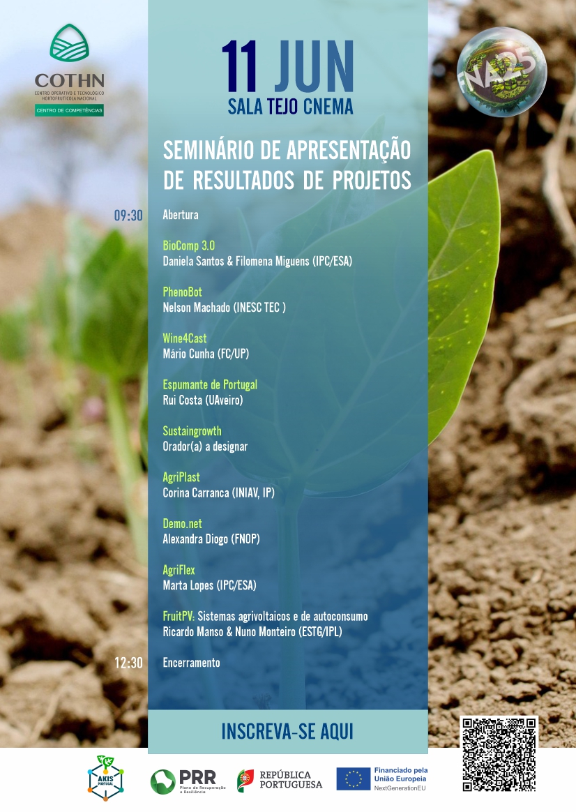 Realizado no dia 16 de junho de 2024, na Feira Nacional de Agricultura, com a apresentação a cargo da coordenadora do projeto, a investigadora Marta Lopes, da Escola Superior Agrária de Coimbra, presente no Stand Conjunto dos Centros de Competências e inserido no ciclo de Webinares denominado Raízes da Sustentabilidade.