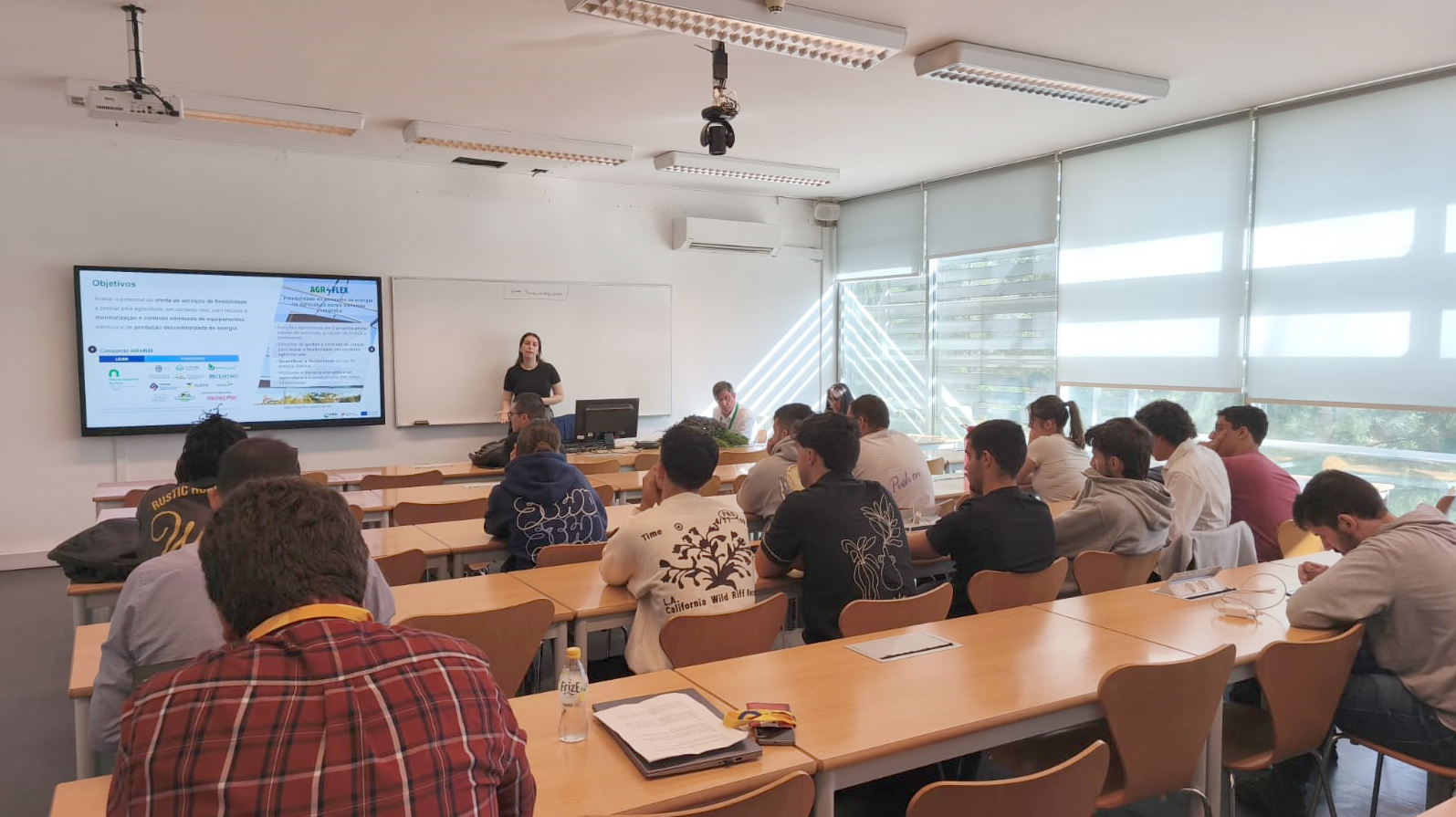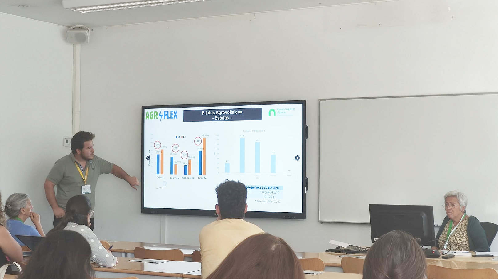 O projeto AgriFlex e o pólo de agricultura sustentável da ESAC foram dados a conhecer aos estudantes de Biologia da Universidade de Coimbra, através do Workshop "Agrivoltaicos e a Biodiversidade: Uma simbiose para a sustentabilidade na agricultura", realizado a 24/11/2024, no âmbito do Xmeet.Eco Coimbra.