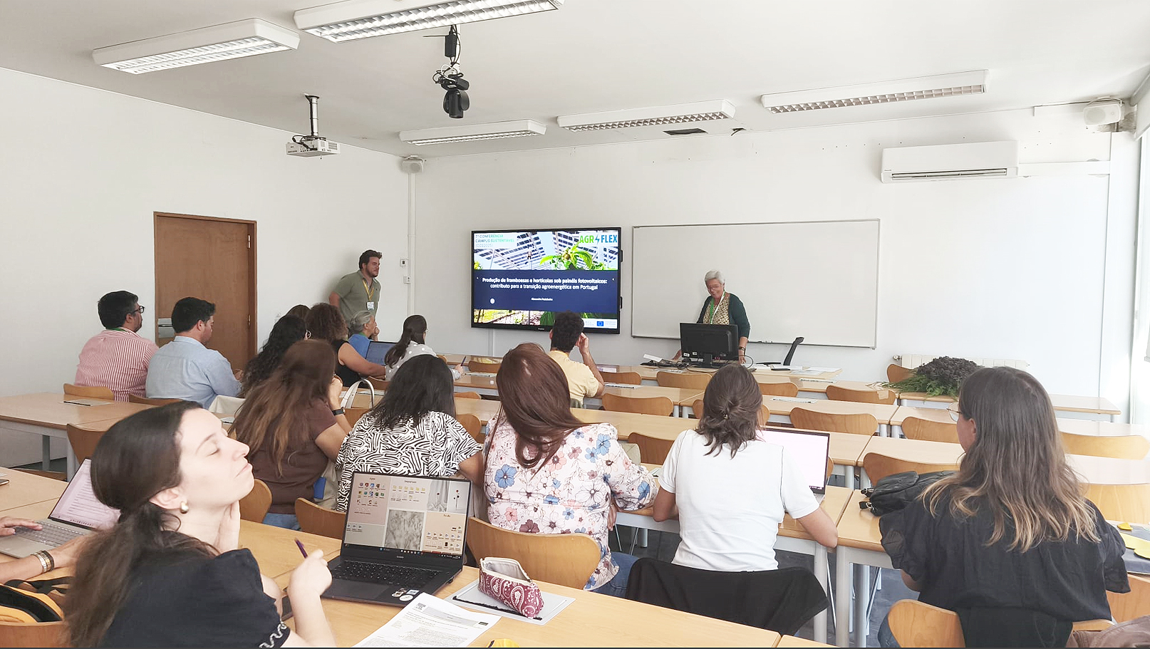 Este encontro científico, realizado em março de 2025 na Universidade de Lisboa, foi dedicado à tecnologia agrivoltaica, onde foram apresentados novos projetos agrivoltaicos que começam a surgir noutras instituições de ensino superior em Portugal. Investigadores e docentes de diversas universidades partilharam as suas experiências e abordagens na integração de energia solar com produção agrícola, discutindo os desafios e oportunidades desta tecnologia em diferentes contextos académicos e urbanos.